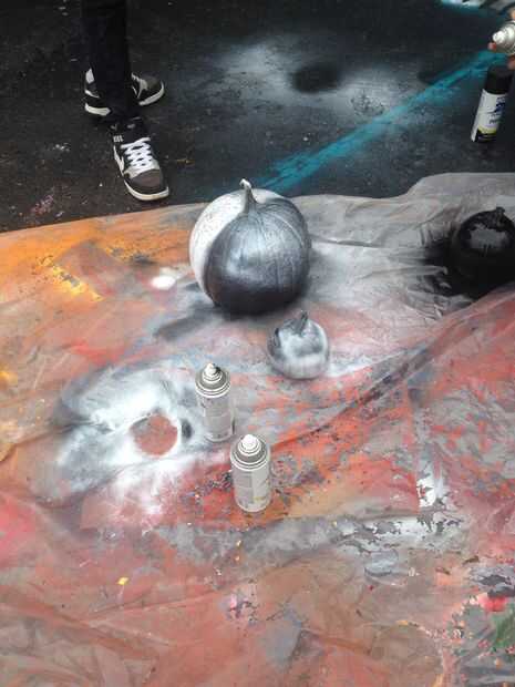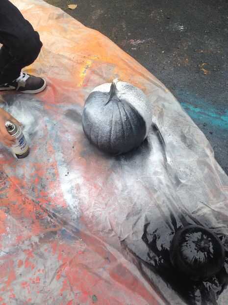 Si quieres un look uniforme base puedes grafitear tu calabaza. Elegí plana blanco y negro para nuestra calabaza. Algunos de aquellos que hacen este proyecto me tiene muy creativos con su pintura a pistola.