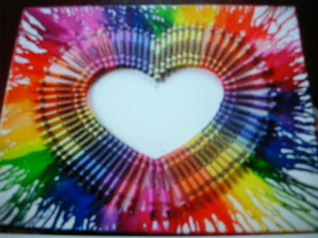 2. toma tu pistola de pegamento caliente, derretir pegamento en cada crayón y colocar sobre el tablero en cualquier tipo de moda te quiere que sea sólo una línea recta, una corazón, estrella, ola, sea cual sea.