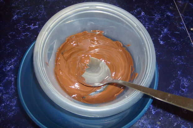 Utilicé este lote para poner en el helado, pero también puede ponerlo en cubiteras bonita para hacer chocolates. O mezclar en algunos mantequilla de maní y luego vierte en bandejas.