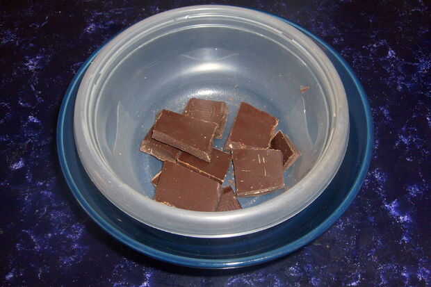 Elija 2 tazones de fuente, una superior debería encajar en la parte inferior con espacio de sobra. Verter agua hirviendo de su hervidor de agua eléctrico en la parte inferior uno, poner la parte superior dentro del agua y poner en el chocolate.