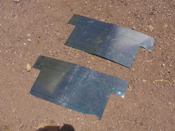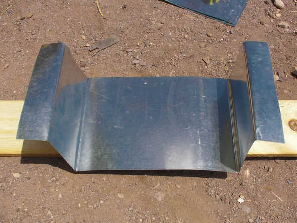 -Con cada 11" por 25" pedazo de metal de hoja, doblar a lo largo de la línea 1" hacia usted. Voltea la pieza y doblar desde el extremo de cada rebanada hacia usted. Ahora tienes los lados restantes.