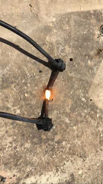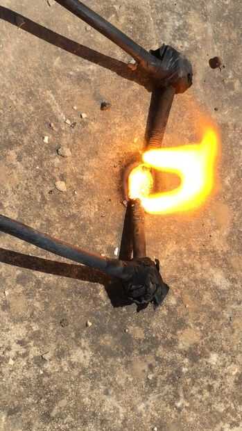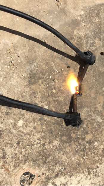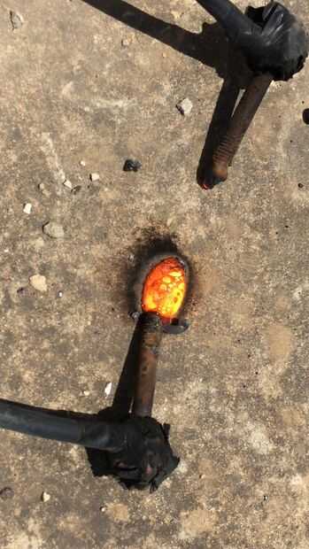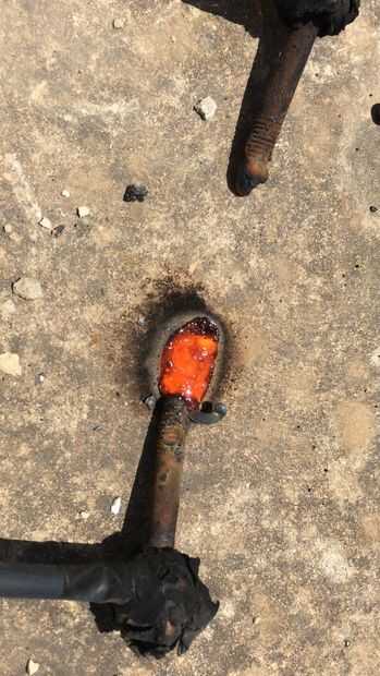 hice muchos experimentos con esto configurado, derretido y hervida metales, vidrio y hasta rocas y concreto! Encontré que cuando cristal y rocas están a alta temperatura se convierten en conductores (puesto que los átomos llegan a ser libres y alta energía). Las fotos ilustran cómo el concreto fue fundida y hervida, tres últimas fotos son de un pedazo de roca después de estar un poco fundido, y lo negro es una estirada gota de lava después de refrescar...