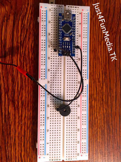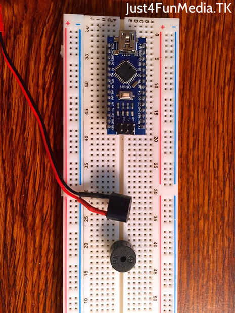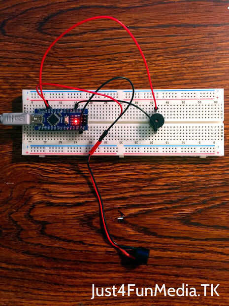 El pin positivo en uno de la alarma el cable al pin digital 9 y el pin positivo del segunda Piezo para pin digital 10.