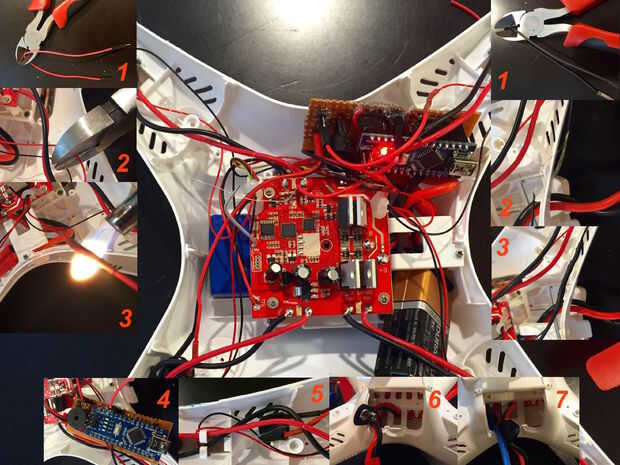 Si su avión ya como una alarma de pérdida de señal de voltaje bajo usted querrá aprovechar este. En mi quadcopter el LED de flash cuando la batería alcanza el 10% o se pierde la señal. La configuración que se muestra en el X8 pasa la energía llevada a través de Arduino. Si el LED de flash una vez encendido el Arduino, la alarma continuará sonando durante horas.