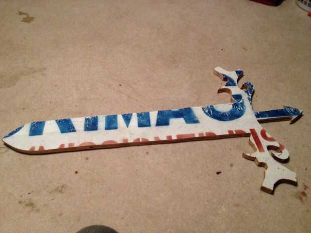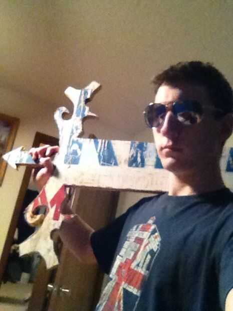 así que aquí estoy de nuevo, mostrando mis espadas de madera. La más reciente adición a mi colección es la Derringer' real' del cómic web 'Homestuck' las dos primeras fotos son de la plantilla de protección cruzada con grapas (si utiliza plantillas y desea volver a ellos no utilizan grapas, cinta funciona mucho mejor) a la junta la imagen ampliada en es una comparación de tamaño con una regla.