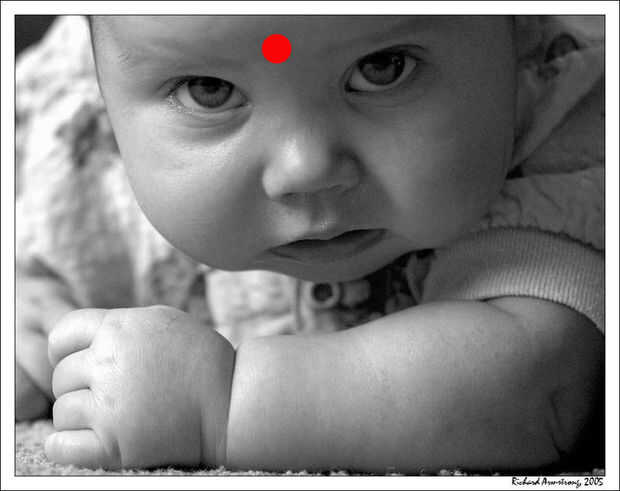 Suavizar a tu mirada y directo entre y ligeramente por encima de los ojos de starer. Tratar a un amigo y verás la diferencia, no hay conexión, ninguna sensación de la intrusión porque hay no hay verdadero contacto con los ojos.