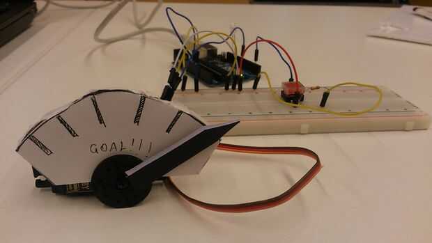 Hicimos una esfera y una pantalla de papel y cartón y fijarse al motor servo.