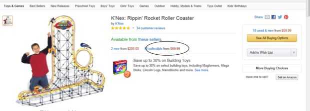 No utilice los nuevos conjuntos de K'nex. Mientras que son fáciles de obtener y son divertidos para jugar, ellos no sustituir los dos sistemas que he mencionado más arriba. Me pareció la mejor manera de obtener estos conjuntos a través de Amazon.com. Si cualquiera de los sistemas de búsqueda, usted notará una sección llamada "Coleccionables" (ver foto en la parte superior de esta página). Esto es muy similar al Craigslist.com donde personas venden sus artículos usados para el dinero. He adquirido juegos de montaña rusa apenas usado con todos los componentes de $30 - $100. Mientras que esto parece un montón, un nuevo conjunto es de casi $300.