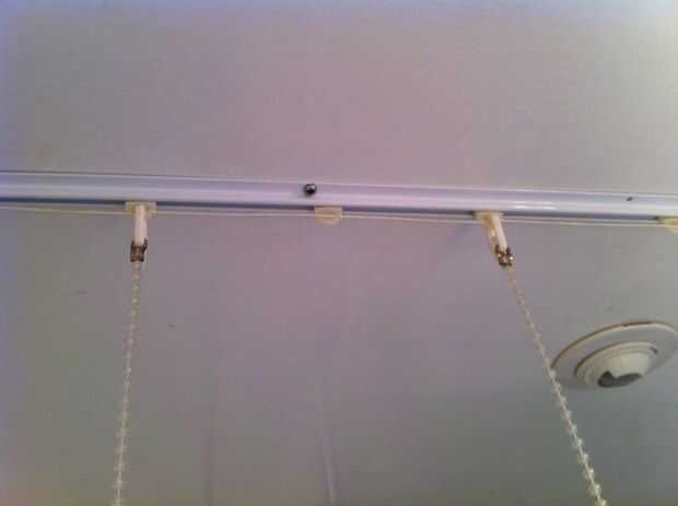 Colgado una barra de cortina en la última vela para ayudar con la cortina de apertura porque no quieres tirar de la cortina de sí mismo. La barra es una barra de cortina/persiana estándar sobre un metro de largo (ha doblado un poco en los últimos años). Este sistema ha funcionado bien y no muestra signos de algún problema (aparte de que necesitan un poco de limpieza).