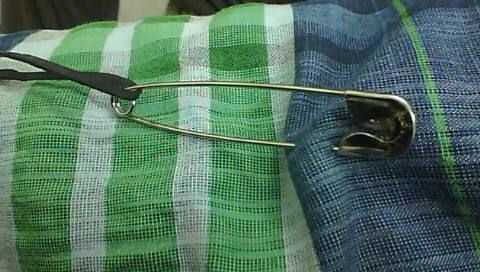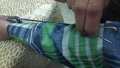 Ahora otra vez abrir el pasador de seguridad, mantenga la pluma en la mano y estire la goma elástica tanto como puedas a lo largo de su brazo y luego perforar el perno de seguridad dentro de la manga donde ha llegado y luego cerrar el perno como se muestra.