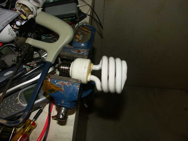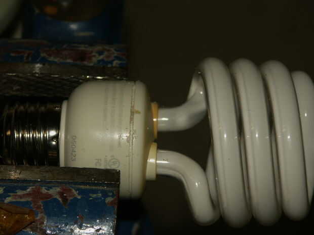 Desafortunadamente, incluso si sólo press-fit, las dos piezas son generalmente demasiado firmemente adosadas para sólo les aparte con las manos, aunque sólo sea porque una de las mitades tiene solamente el tubo de vidrio para conseguir un apretón. A veces la costura de Unión es flojo o lo suficientemente grande como para caber en un destornillador de hoja plana, pero es más fácil (si no quieres volver a utilizar la carcasa de la bombilla) para cortar una ranura poco profunda en la costura con una sierra para metales. Sólo mantener la vivienda bien (en un pequeño tornillo como en la imagen, o no,) y vi una ranura apenas a través de la carcasa - de aproximadamente 4mm.