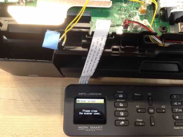 Había en cinta hacia abajo los interruptores de seguridad para hacer que la impresora piense se cerraron todas las cubiertas (las cubiertas fueron quitadas enteramente).