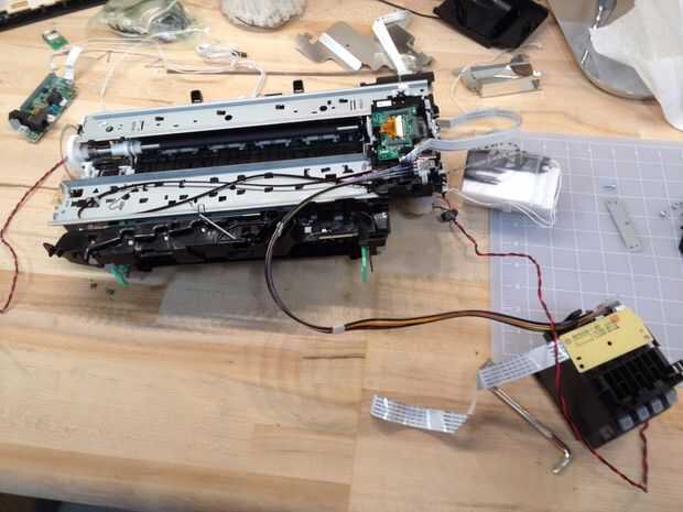 por lo general, cuando una impresora deja de funcionar, compramos uno nuevo y uno roto de basura.  Apenas nos molestamos para comprobar si podemos usar su parte del trabajo para hacer algo nuevo.  Hay varios componentes en una impresora rota como mot