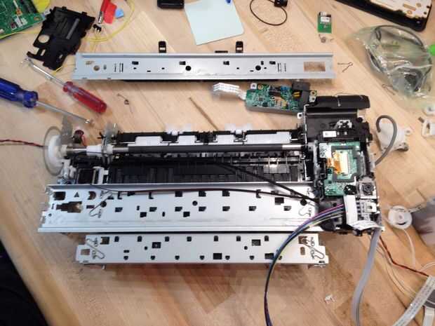 por lo general, cuando una impresora deja de funcionar, compramos uno nuevo y uno roto de basura.  Apenas nos molestamos para comprobar si podemos usar su parte del trabajo para hacer algo nuevo.  Hay varios componentes en una impresora rota como mot