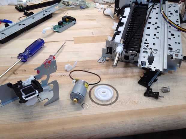 por lo general, cuando una impresora deja de funcionar, compramos uno nuevo y uno roto de basura.  Apenas nos molestamos para comprobar si podemos usar su parte del trabajo para hacer algo nuevo.  Hay varios componentes en una impresora rota como mot