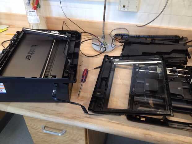 por lo general, cuando una impresora deja de funcionar, compramos uno nuevo y uno roto de basura.  Apenas nos molestamos para comprobar si podemos usar su parte del trabajo para hacer algo nuevo.  Hay varios componentes en una impresora rota como mot