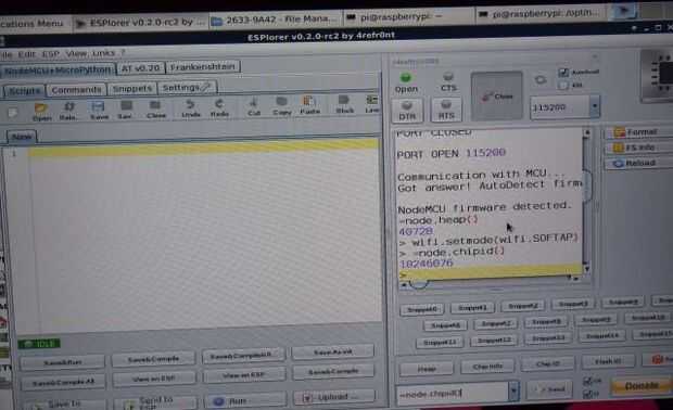 Para conectar a un ESP8266 con nodemcu en él, sólo enchufarlo, elija su velocidad de serie (elegido en tiempo de compilación) y haga clic en el botón conectar . Debería ver el prompt de lua y posiblemente datos de sistema o montón de archivo dependiendo de tu firmware. (ver foto)