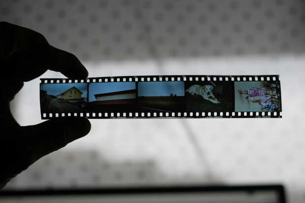 Deslice la película + proceso de blanco y negro = negativos blanco y negro + poco contraste