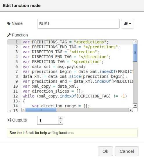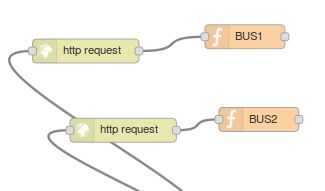 Arrastre dos nodos de la función en el espacio de trabajo. Haga doble clic en el primero de ellos y lo BUS1. Nombre el segundo BUS2. Ajuste el código en la función de BUS1