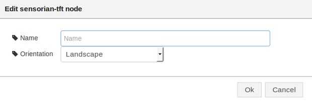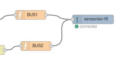 Por último, los datos deben mostrarse. Arrastre un nodo Sensorian tft en el espacio de trabajo y cables para los lados derecho de BUS1 y BUS2. Haga doble clic en sensorian tft y defina su orientación en el paisaje.