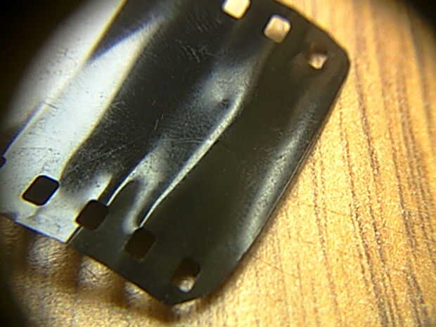 Entonces reanudan sus tijeras y cortar bordes redondeados en la esquina de la película, esto hace la carga más suave y ayudar a la película a rodar en el carrete.