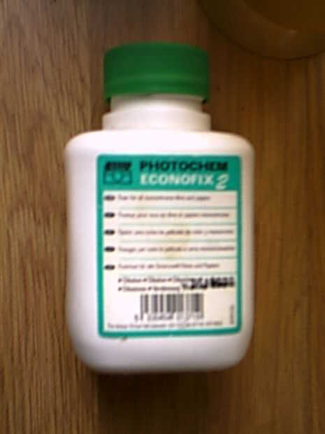 El fixer - el fixer corrige los cristales de plata depositados en el lugar y se detiene la película de ser sensible a la luz.