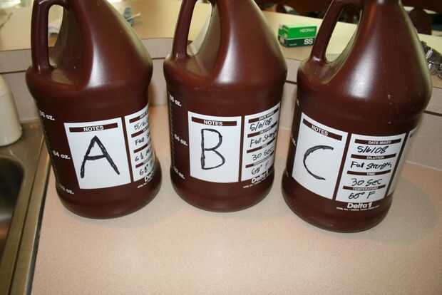 Mezcle los productos químicos según las instrucciones del fabricante. Generalmente, esto evoluciona a llenar una botella con 3/4 de agua necesaria, agregando el concentrado químico y luego agregar el agua necesario. Prefiero mezclar mis químicos de fotografía en oscuras botellas opacas, porque encuentro que tienen una vida útil un poco más de esta manera. Si no ves a ti mismo trabajando con los productos químicos muy a menudo, hacer sólo lo que necesita para desarrollar el número de rollos que tienes, porque los productos químicos tienen una vida útil mucho más larga cuando se concentra. Hacer solamente soluciones, sin dilución. Deje los frascos en la habitación que va a desarrollar en toda la noche para igualar la temperatura y asegurar que el producto químico se mezcla correctamente.