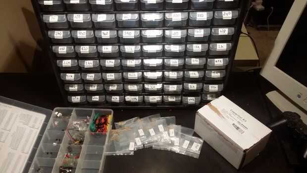 No circuito existe sin estos chicos. Estos son bloques de construcción fundamentales de cada circuito. Controlan a una especie de flujo de corriente a varias partes de su circuito. Quiere usted mismo una tonelada de estos y en una variedad de valores en eso. Tengo todos mi forma de resistencias un laboratorio de electrónica en la escuela. Sólo iban a desecharlos, en serio. Al final del semestre, mezclar todos los componentes poco y comprar nuevos porque tomaría demasiado largo para reorganizar todo; son super baratos comprar de todos modos. Así que me ofrecí como voluntaria tomar de sus manos. Te darás cuenta que ejemplifican la cita, "la basura de un hombre es tesoro de otro hombre". Si no tiene suerte como yo, otra vez estas cosas son super baratas. encontré un bonito kit en Amazon. Hay toneladas de opciones como esta todo. También hay para inductores y condensadores (este es el que tengo).