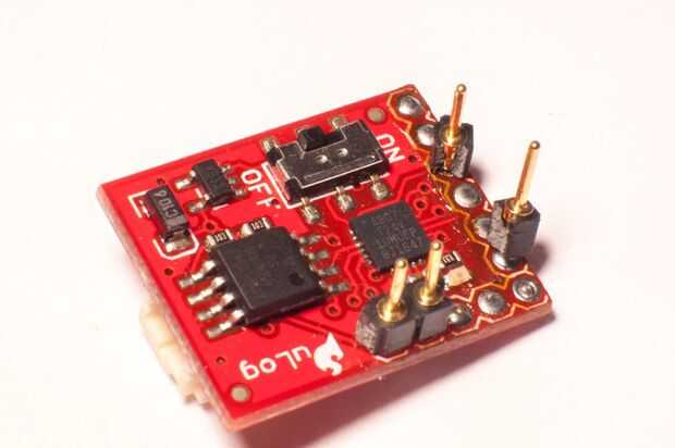 También utilizo datalogger "uLog" (Fig. 2) que recopila datos analógicos de 3 canales de un gran almacenamiento flash IC y cuando se conecta a un adaptador de USB-serial rs232, se pueden leer los datos más adelante + se ejecuta en una 1 celda LIPO.
