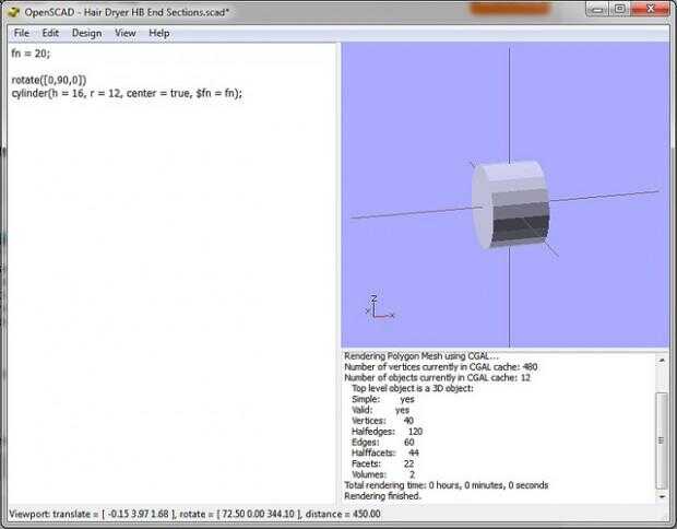 Para facilitar la construcción, quiero orientar la parte para que coincida con mi dibujo. Por lo tanto, tengo que girar el cilindro 90 grados, que voy a hacer con el eje y. Podría han justo girado mi vista, pero finalmente quiero hacerla quedar completamente plana sobre el plano x-y... y creo que esto hará que sea más fácil