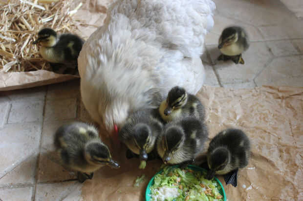 Hasta ahora la perla tenía siete nacidos de los huevos nos habíamos recuperado de la casa de pato era ahora tiempo para dejarlos todos tomar un aperitivo antes de ir a dormir y luego pensar en cómo íbamos a restaurarlas a su madre biológica en la mañana... pero eso es otra historia...