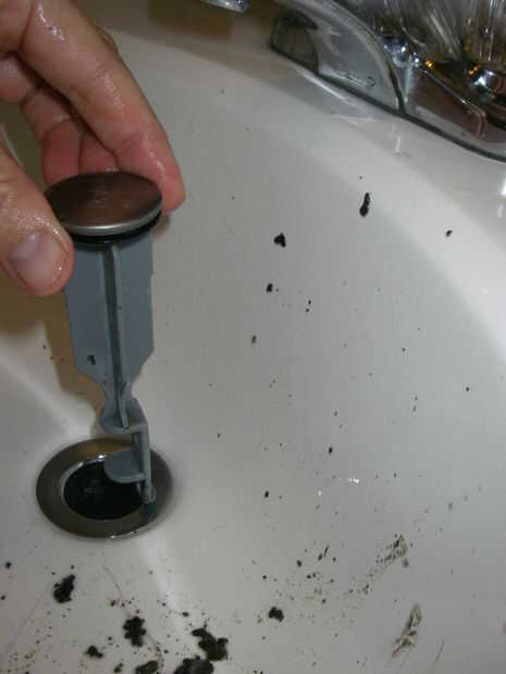 Levantar el tapón por un cm más o menos con una mano, mientras alcanzando debajo del fregadero con la otra mano ajuste la barra horizontal para conseguir que el eje del plástico en el orificio en la parte inferior del tope por lo que están conectados.