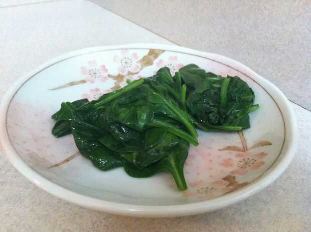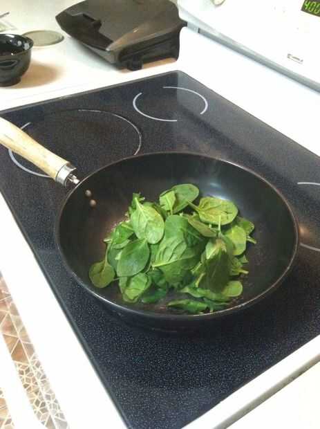 Derretir la mantequilla en la sartén, añadir las espinacas, cocinar entonces dejar de lado