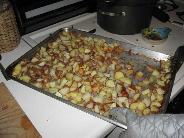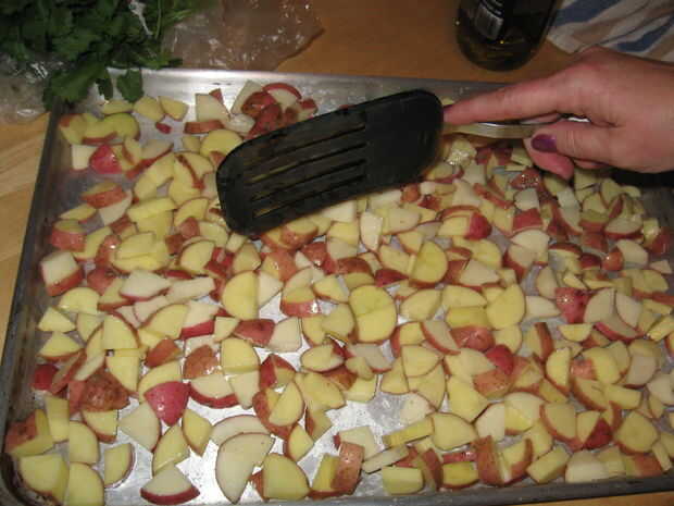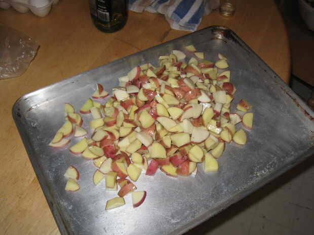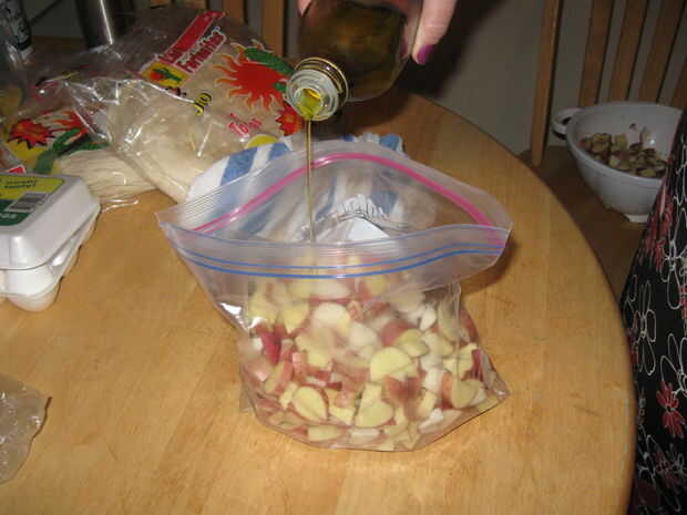 Después de hacer esto, lavar las patatas y luego secarlas para estar listo para hornear. Poner las patatas en una bolsa de plástico y después algún aceite y sal con él y mezclarlo todo en la bolsa. Después de que el aceite sea bueno y propagación alrededor de a continuación, colocar las patatas en una bandeja para hornear y extiéndalas tan allí no son superposición de muchos. Luego ponerlas en el horno durante unos 30 minutos, luego comprobarlas y les tirón y moverse alrededor y luego ponerlas en para sobre otro 10-15 minutos dependiendo de cómo desea.