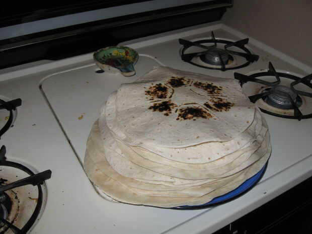 También ahora es el momento que se desea calentar y cocinar todos tus tortillas y hacer un bonito montón acercar a su mezcla de ingredientes.
