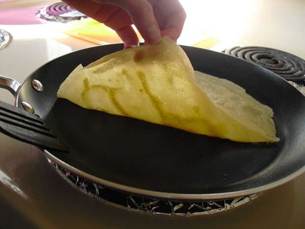 esta es una receta sencilla y puede ser azotado para arriba en menos de 10 minutos. La receta puede ser doblada fácilmente para alimentar a más gente. Esta gente puede poner cualquier rellenos o coberturas que quieren en sus crepes. Esto puede hacers