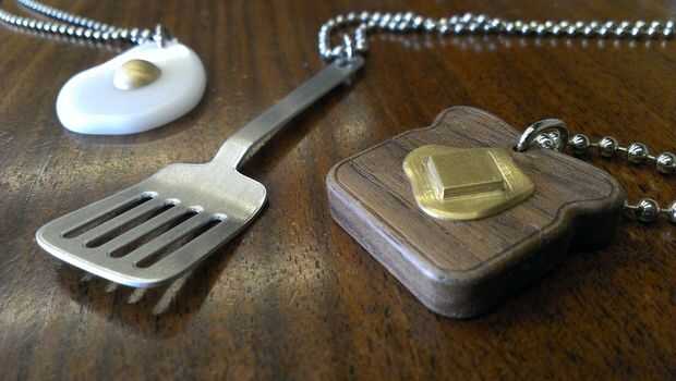 Aquí en Otra máquina Co., nos encanta el desayuno al igual que el resto. Hemos decidido compartir nuestro amor en forma miniatura con materiales de larga duración: los mediados de siglo modernos mañana comida, si se quiere. La serie héroes de desayuno se hace en el Othermill y consiste en una pieza de madera de pan tostado con un inserto de latón mantequilla derretida, un huevo frito de plástico con un inserto de yema de huevo de latón y una espátula de aluminio. Elegimos materiales durables que se veía bien sin tener que agregar la pintura.