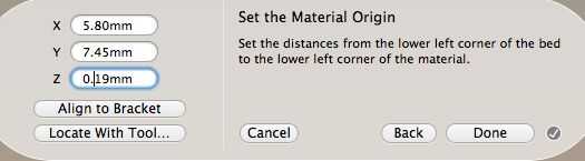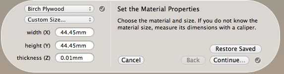 - Nota: Su espesor (z) se establece en 0 en Otherplan. Ajusta automáticamente a 0.01 milímetros (o 0,0004"). Esto es porque el origen de código de G se encuentra en la parte inferior del material. Otherplan asume que el origen sea en la parte superior del material.