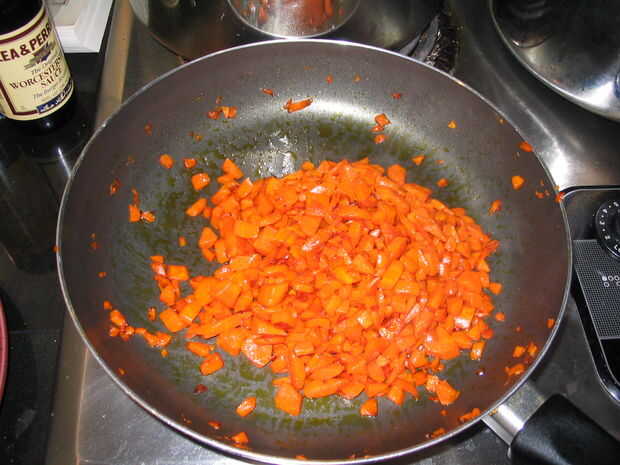 Cocinar las zanahorias hasta que se ligeramente carmelized y este aspecto. Dependiendo del tamaño de las piezas, esto puede tomar unos minutos mientras conduce el agua de las zanahorias.