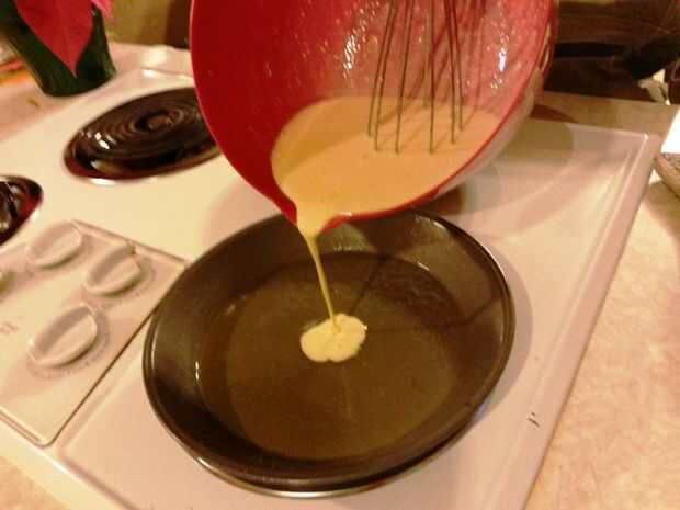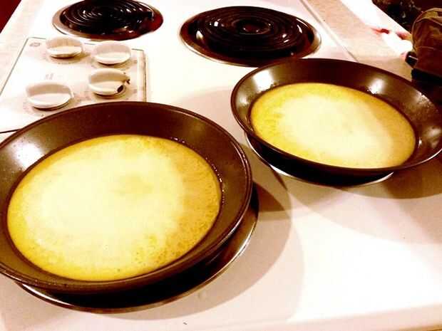 Vierta la mitad de la masa en el centro de cada pan, si usas las dos bandejas de 9", o todo en la cacerola. Deje que la mezcla difunda en su propia que empujará la mantequilla derretida en los bordes. Cuando primero estaba haciendo esto derramé sólo hacia adelante y hacia atrás o en una espiral que empuja la mantequilla en pequeños bolsillos o líneas. Que realmente se levantó en extraños patrones de esta manera, hacer un poco de todos modos, pero con la mantequilla en los bordes que tiene una mejor oportunidad de llegar a aumentar alrededor del borde en un recipiente fresco de la forma que es lo que está esperando.