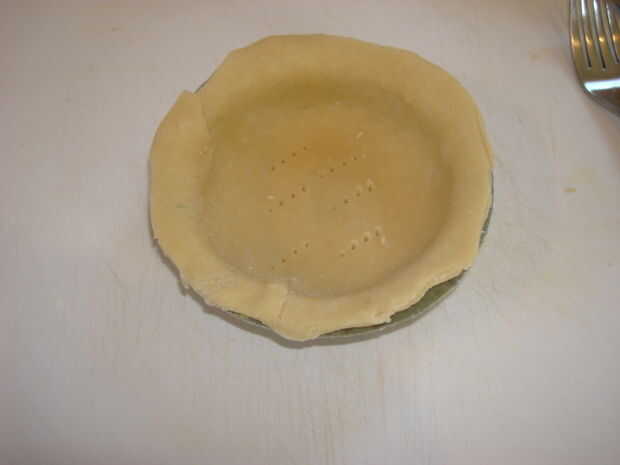Coloque la masa de empanada sobre el contenedor de cartón pastel y cortar el borde para adaptarse.