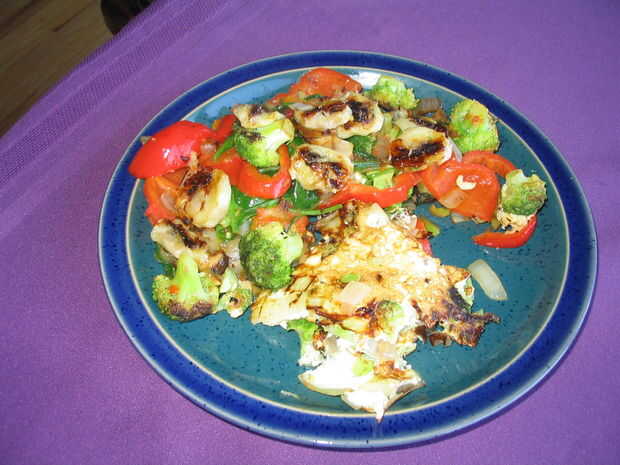 Una vez que los plátanos son un poco ennegrecidos, añadir a la tapa y servir.