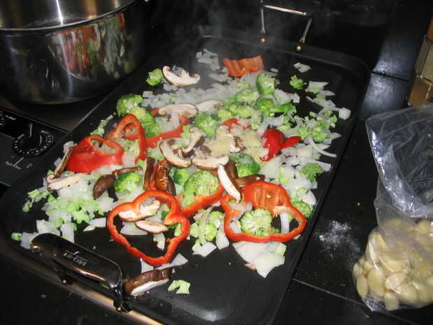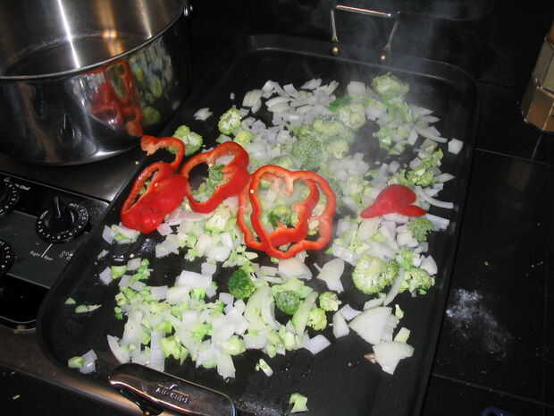 Añadir broccolli y pimiento rojo en rodajas.