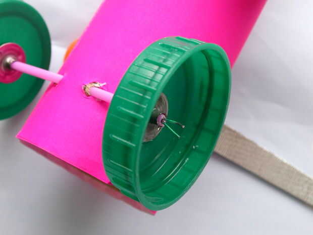• Elegir una tapa de la botella y pase a través del palillo. Asegúrese de que es hacia el interior de la tapa exterior