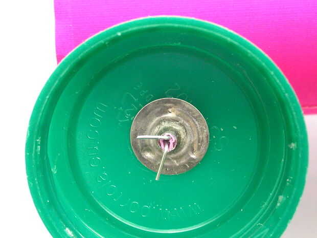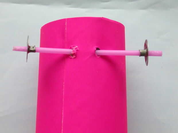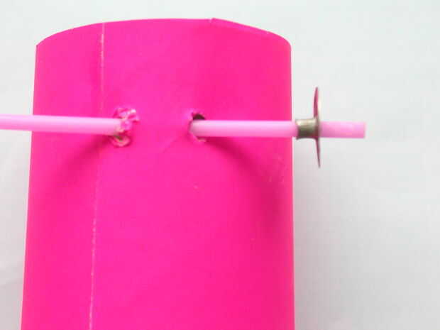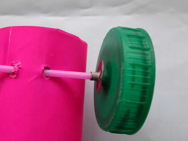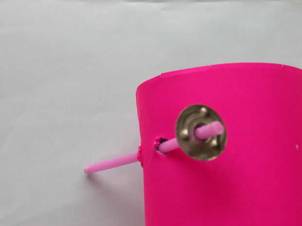 • Escoger otro pin y pase a través del palillo, esta vez la punta del perno quede hacia afuera y el lado plano circular contra la tapa. Idea aquí es fijar la tapa [rueda]