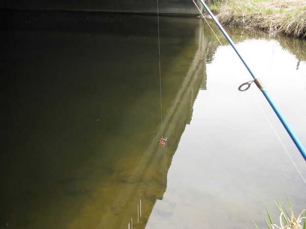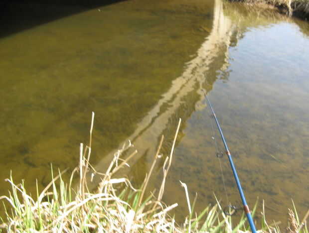 Dejó la línea de seguir la corriente hasta sus bate las gotas en el agua de la parafina, se puede decir esto cuando la línea detiene desenrollando. Establecer su carrete pero no apretar la línea.