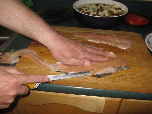 Allí tienes un filete sin piel sin hueso excepto muy pequeño Y los huesos que usted nunca se dará cuenta.