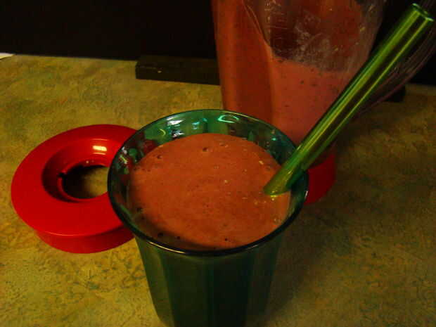 Este licuado de frutas fácil y rápido se llena y grande para pasar la tarde merienda o incluso desayuno!Y no sólo este delicioso sabor, pero usted puede introducirlo a tu gusto!El batido original tiene plátanos, fresas y arándanos, pero puede poner s