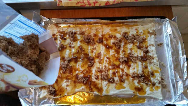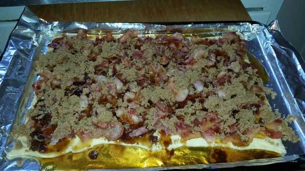 Tiempo reunir toda esta exquisitez en un montón de dulces de la genialidad de arce de tocino! A partir de su masa ya horneada, rociar con 1/4 de taza de su jarabe de arce.
