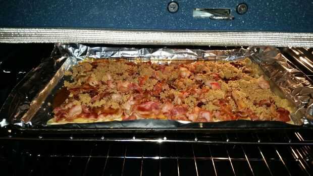 ** Si usted ha decidido añadir las manzanas en cuadritos, ahora es el momento para espolvorearlos en para una contracción del contraste fresca de tarta.